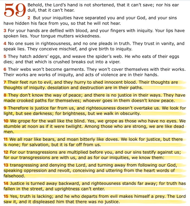 Isaiah 59 – What’s Happening Right Now Share this: Share on X (Opens in new window) X More Share on Facebook (Opens in new window) Facebook Like Loading... Related