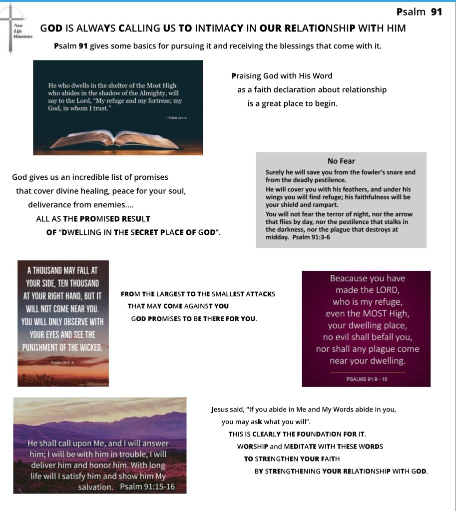 Intimacy In Our Relationship With God -Psalm 91 Psalm 91 Share this: Click to share on X (Opens in new window) X More Click to share on Facebook (Opens in new window) Facebook Like Loading... Related