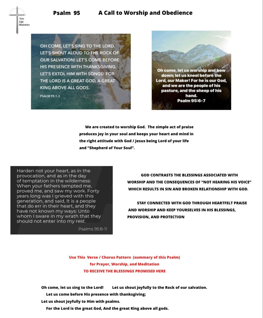 A Call To Worship And Obedience -Psalm 95 Psalm 95 Share this: Click to share on X (Opens in new window) X More Click to share on Facebook (Opens in new window) Facebook Like Loading... Related